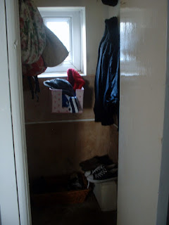 Well... (another sodding thing wrong with the house, to add the list!!) it turns out that cupboard is too cold to store food and had started to grow mold on the shelves and warp the wood.So, all of the food has been moved back in to the tiny kitchen, and i have turned it into a coat room instead